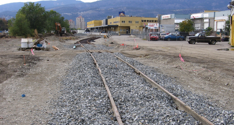 Beginning in early September, 2005, Pacific Northern Rail started removing the old main line track to the Kelowna yard and the Sun-Rype spur. A new roadway was being built where the tracks were. After the final Corn Syrup car was spotted at Sun-Rype on September 9th, 2005, the track was removed. A new line was built to the north to access Sun-Rype. All new rail is 115lb., replacing 100lb. and some 85lb.